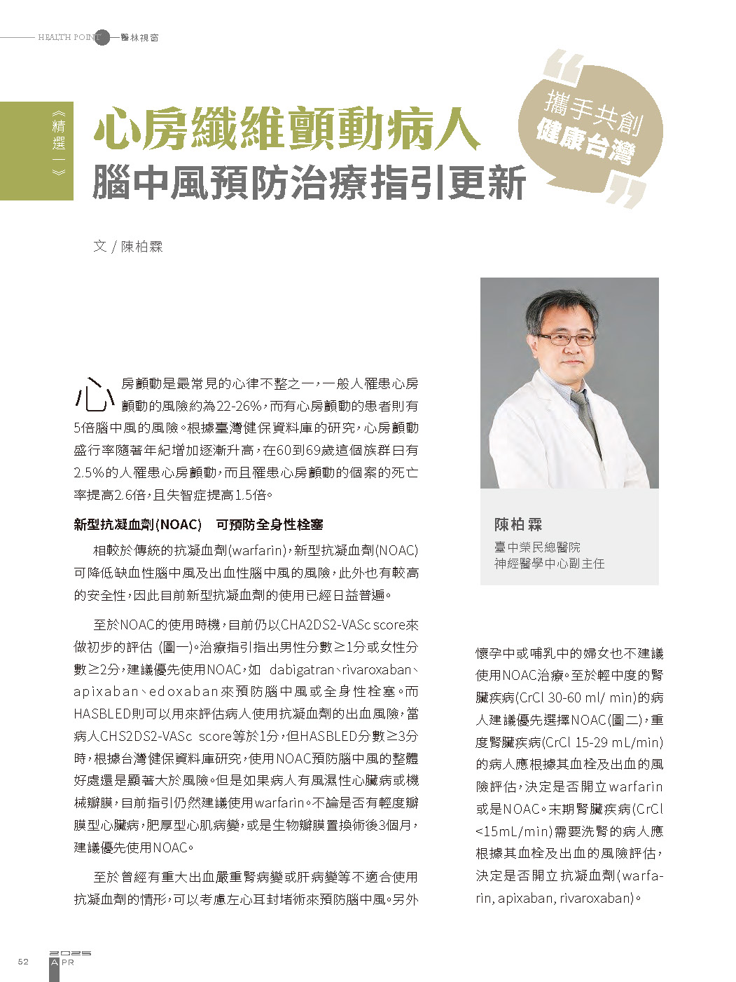 - 心房纖維顫動病人 腦中風預防治療指引更新