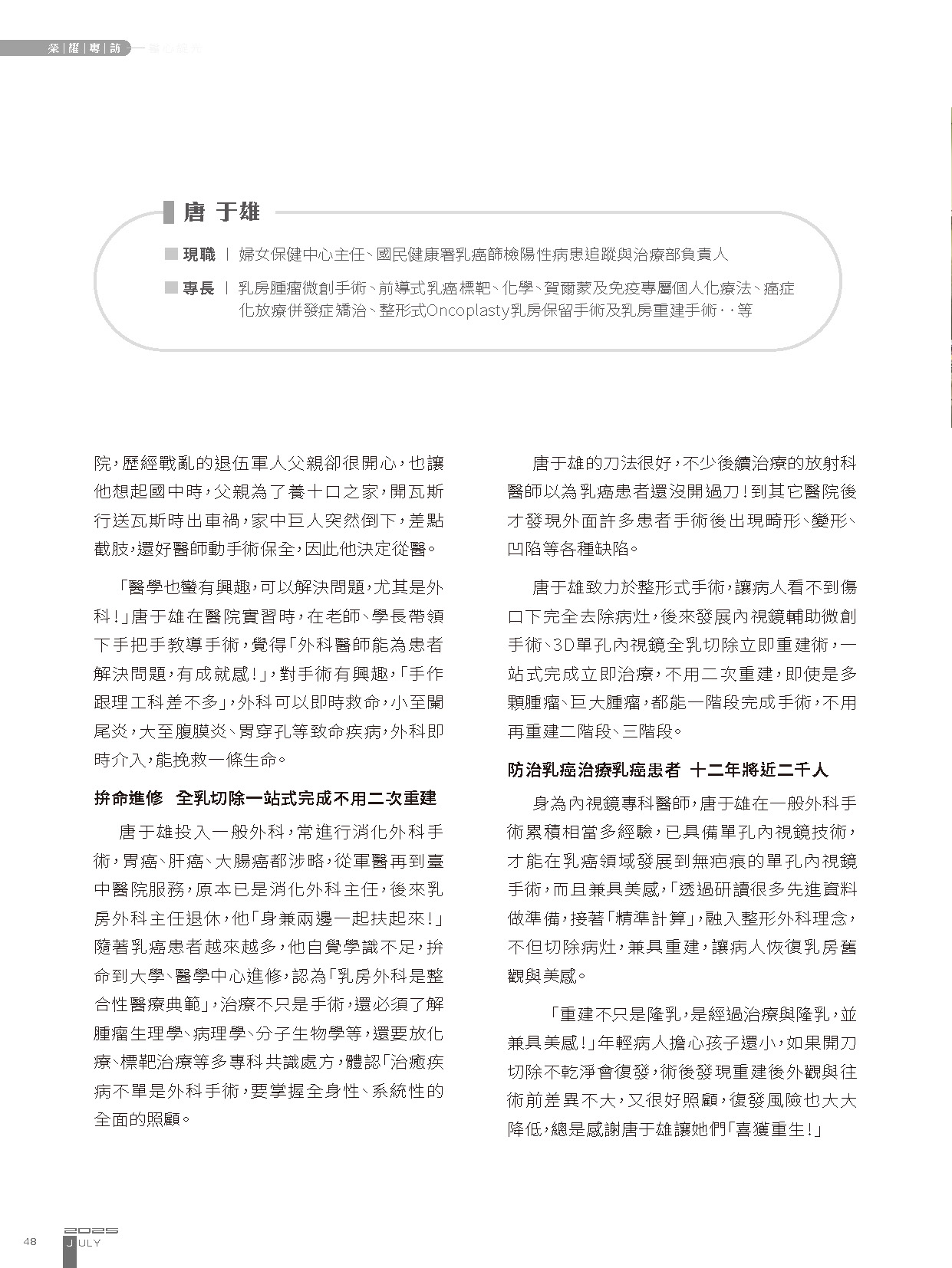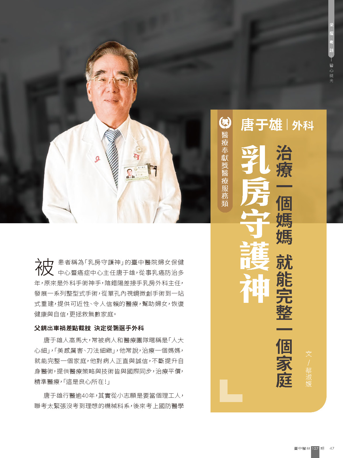 乳房守護神 治療一個媽媽 就能完整一個家庭