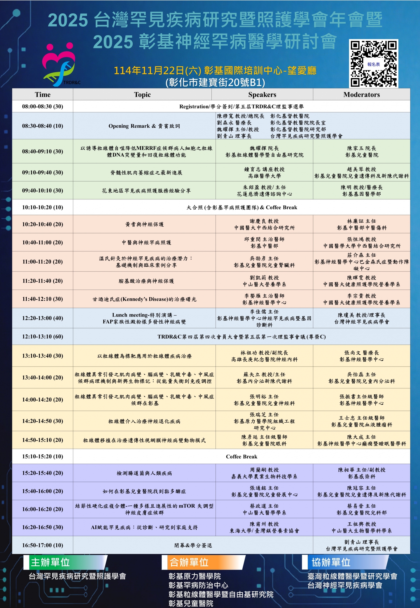 台灣罕見疾病研究暨照護學會除了舉辦精彩的專題演講,也安排了各醫療團隊成果分享、跨領域交流,期待促進彼此的理解與合作,讓罕病照護與研究更臻完善。 這不僅是一場知識與經驗的交流盛會,更是一個凝聚溫暖與希望的日子。 誠摯邀請您一同參與,讓我們為罕病患者與家庭,點亮更多未來的可能。 敬請踴躍參加,期待與您在年會現場相見! 活動資訊: 📅 日期:2025年11月22日(星期六) 📍 地點:彰基國際培訓中心望愛廳 (彰化市建寶街20號B1) 🕗 時間:08:00 – 17:00
