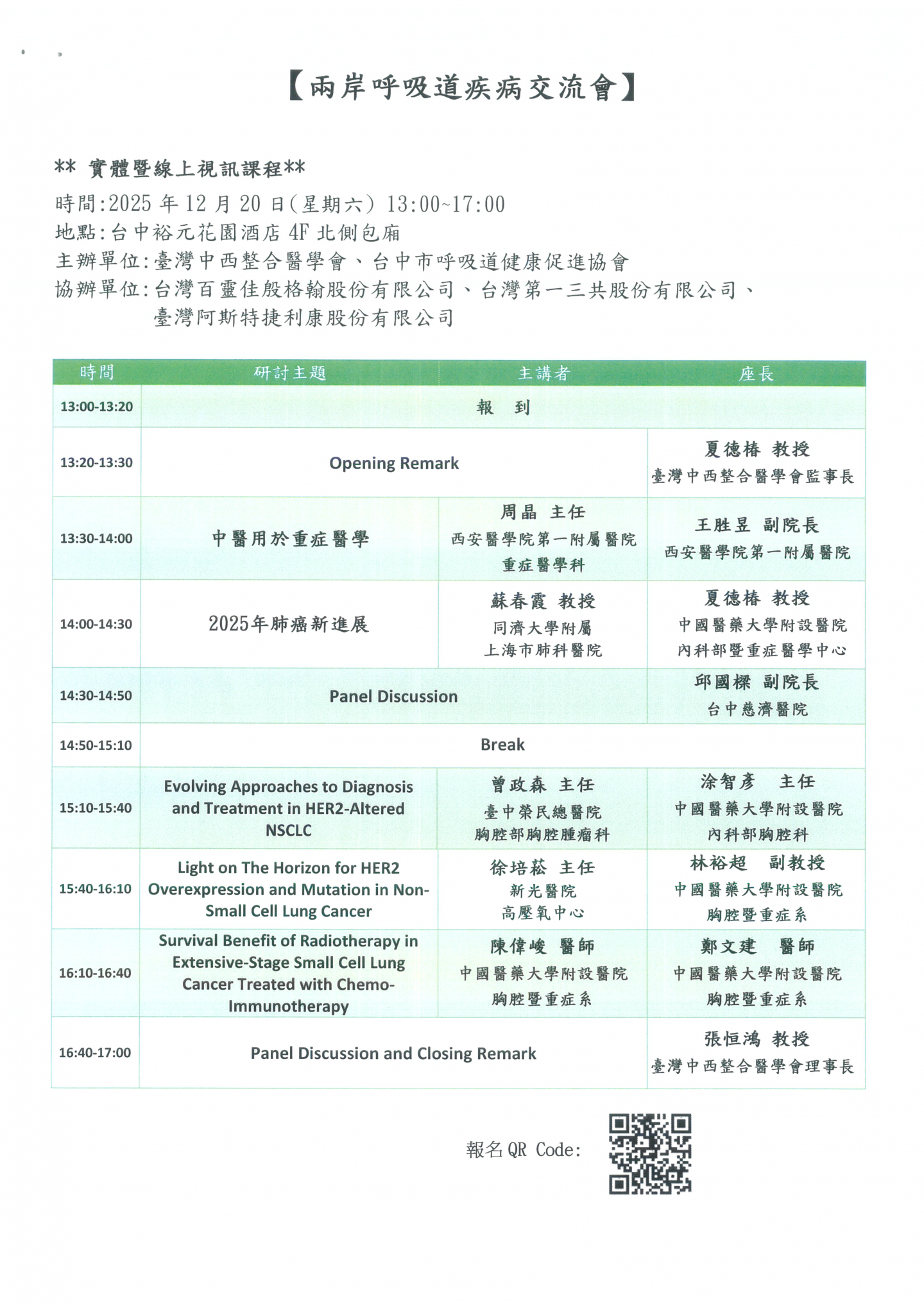 12/20(六)台灣中西整合醫學會舉辦兩岸呼吸道疾病交流會