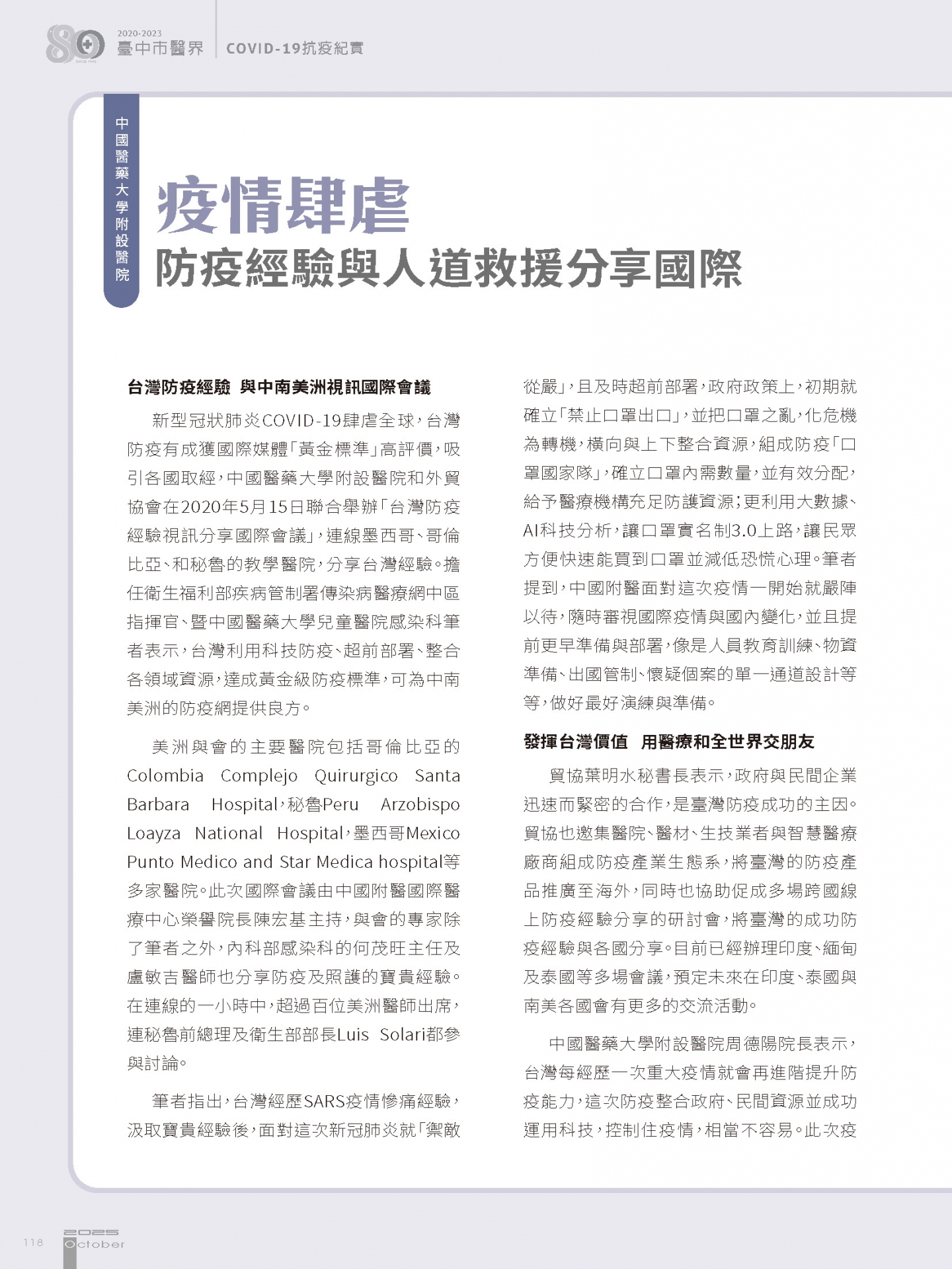 - 中國醫藥大學附設醫院 疫情肆虐 防疫經驗與人道救援分享國際