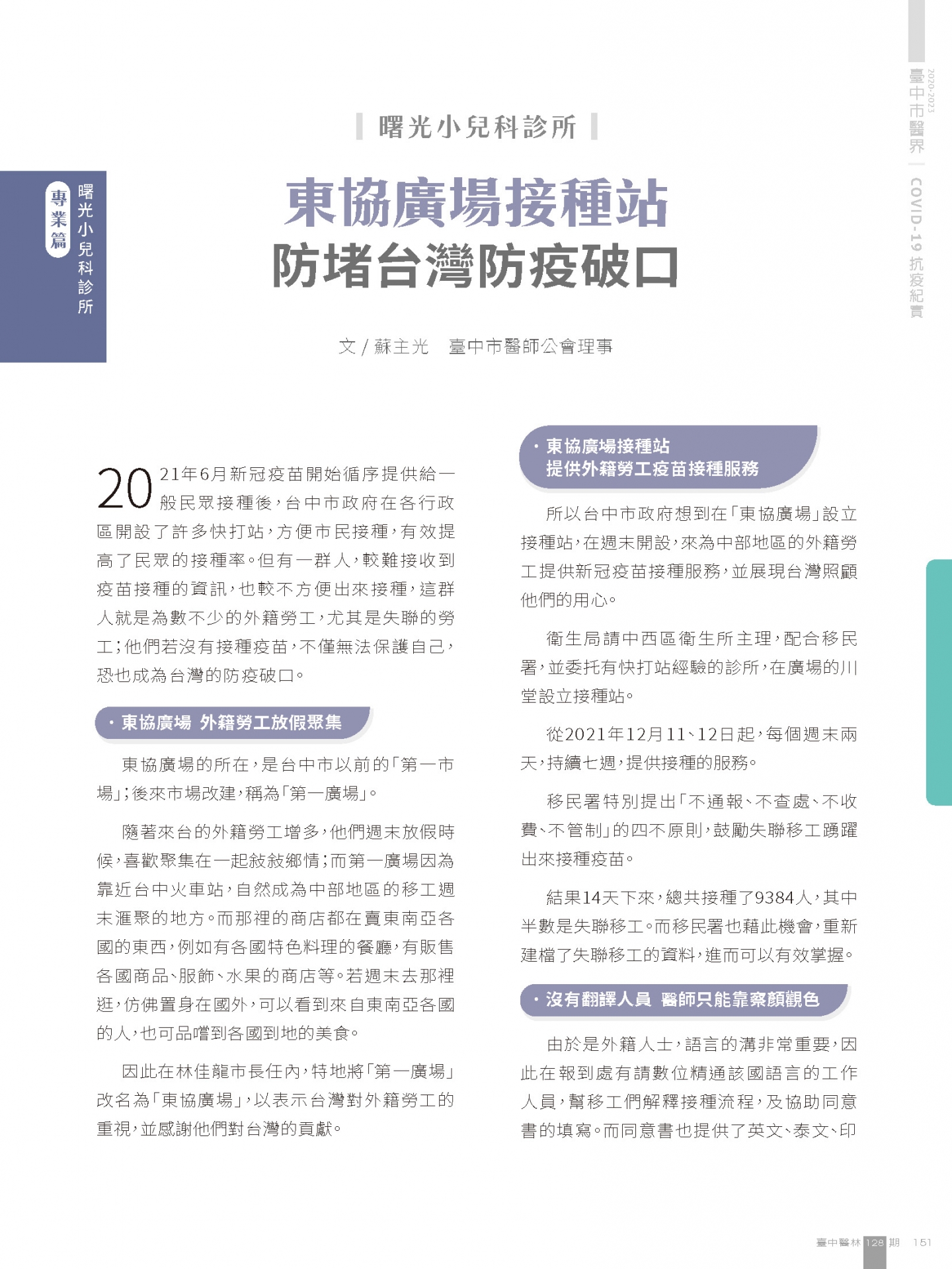 • 臺中市醫界COVID-19 2020-2023抗疫紀實