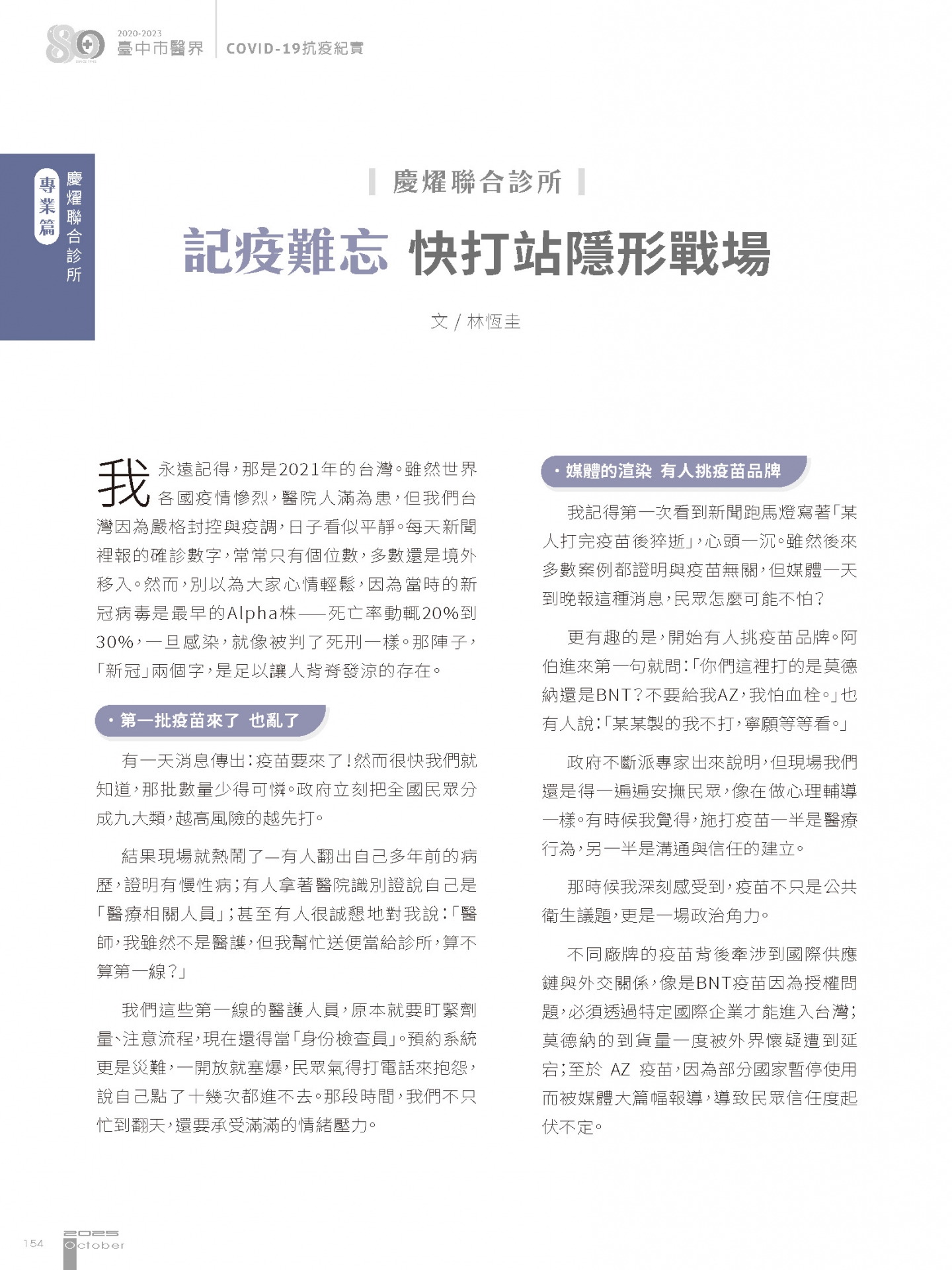 • 臺中市醫界COVID-19 2020-2023抗疫紀實